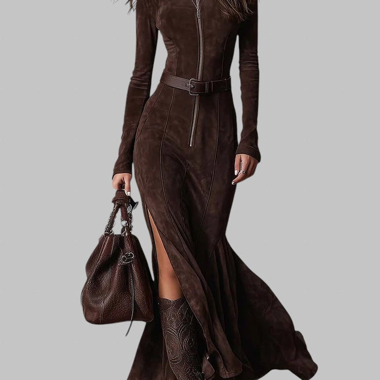 Julina | Elegantna Dolga Obleka iz Umetnega Usnja