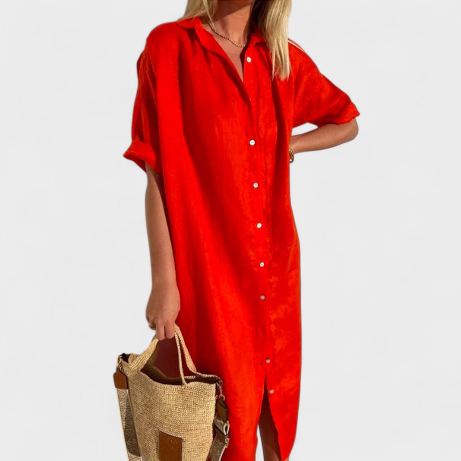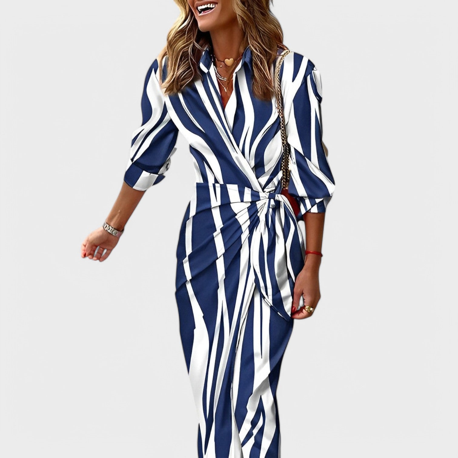 Ana - Elegantna Midi Obleka z Zavezanimi Pasom