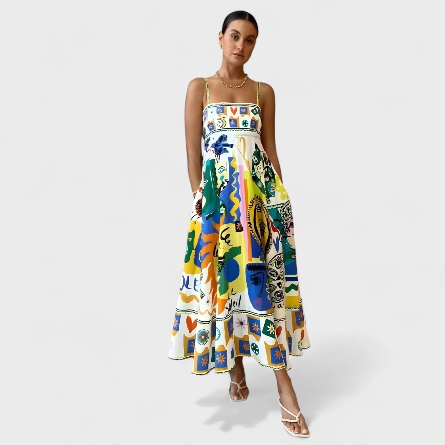 Lúcia - Ročno izdelana maxi obleka s črtami