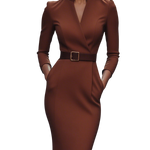 Oblačilo Alzira je popolna ravnotežje med moderno eleganco in brezčasno sofisticiranostjo. Ta obleka je bila ustvarjena za moderno žensko, ki išče stil in udobje.