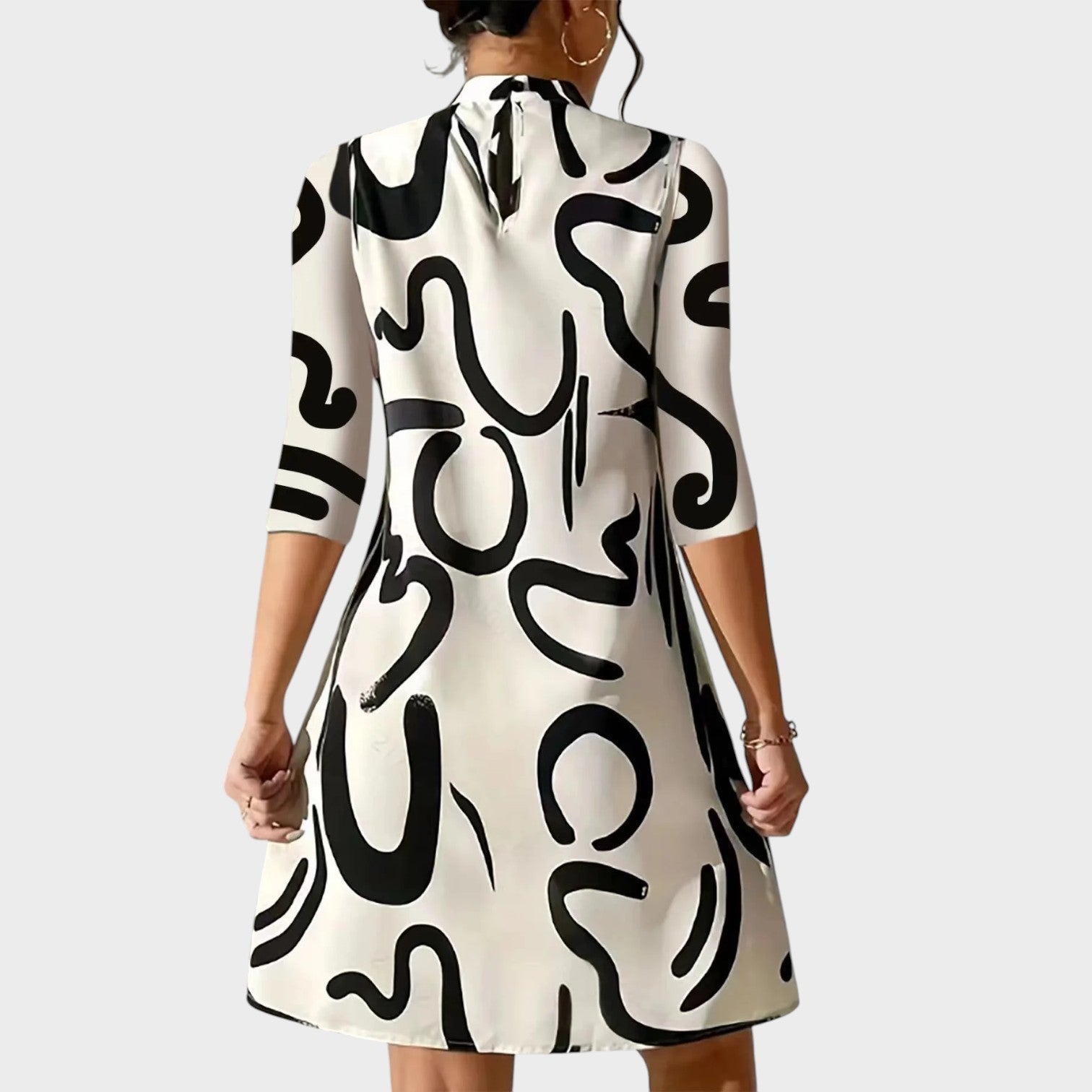 Obleka Olivia je elegantna in udobna obleka, primerna za vsako priložnost. Obleka je izdelana iz mehkega materiala in ima moderen jesenski vzorec, kar jo naredi vsestransko izbiro za letni čas. Pokažite svoj slog to sezono in brez napora združite trend in udobje.