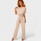 • Vsestranska kombinacija: Nosite kombinezo z visokimi petami in nakitom za glamurozen večerni videz ali jo kombinirajte z ravnimi čevlji za sproščen, a eleganten izgled.
